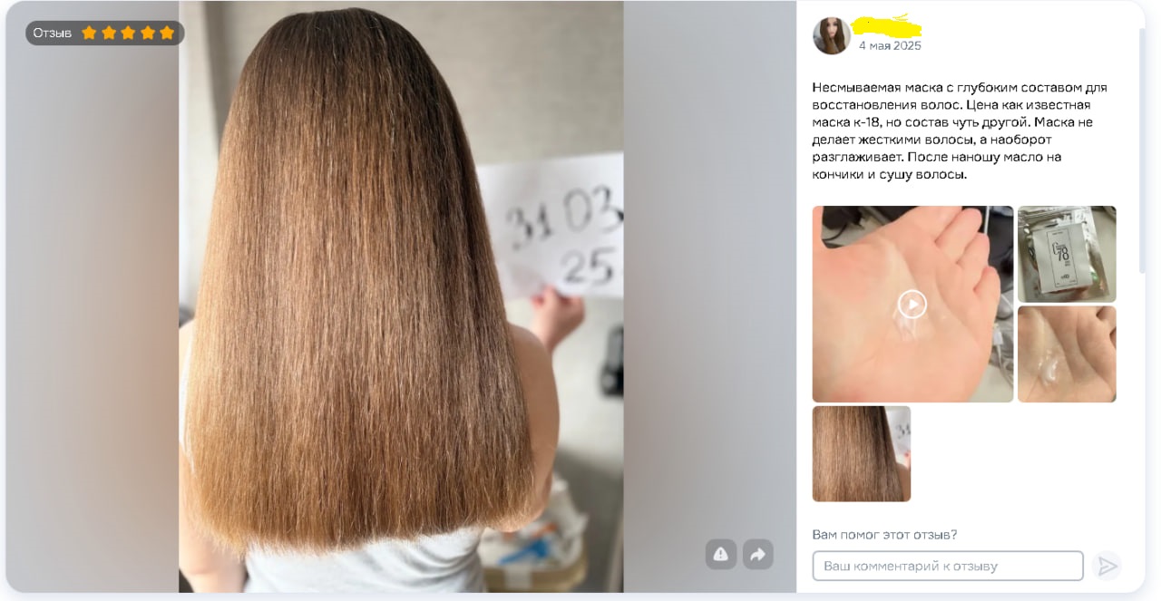Работаю с волосами, пробовала много средств. Эта маска приятно удивила — эффект как после салонного ухода.